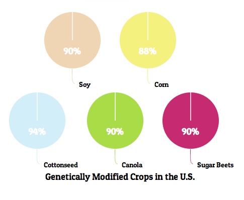 According to the USDA, 93 percent of soybeans and almost 90 percent of corn in the United States is genetically modified. Nearly 80 percent of food products sold in grocery stores have at least one GM ingredient.