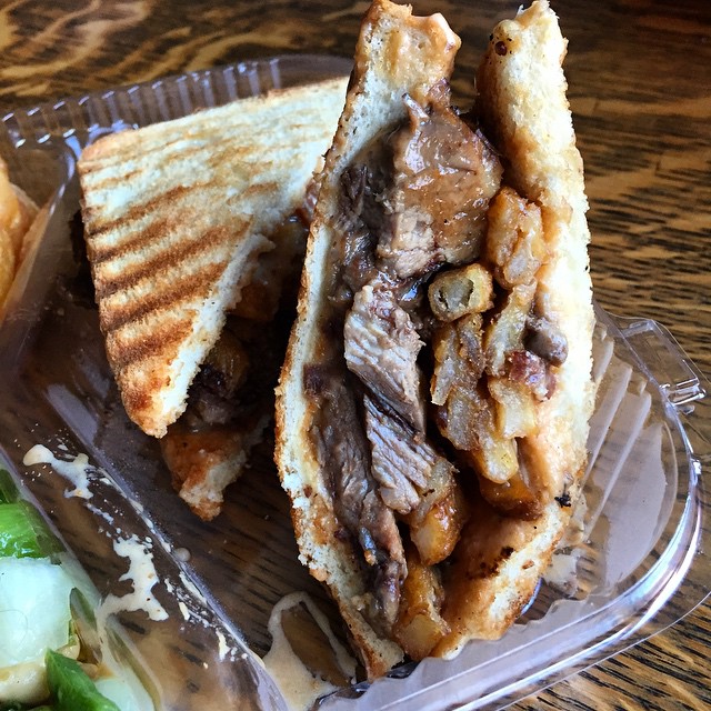 What has everyone treated themselves to today? I may or may not have enjoyed a poutine sandwich (yep, you read that right) complete with a sriracha beer cheese sauce (YEP) from The Crooked Rooster, a favorite place of mine.