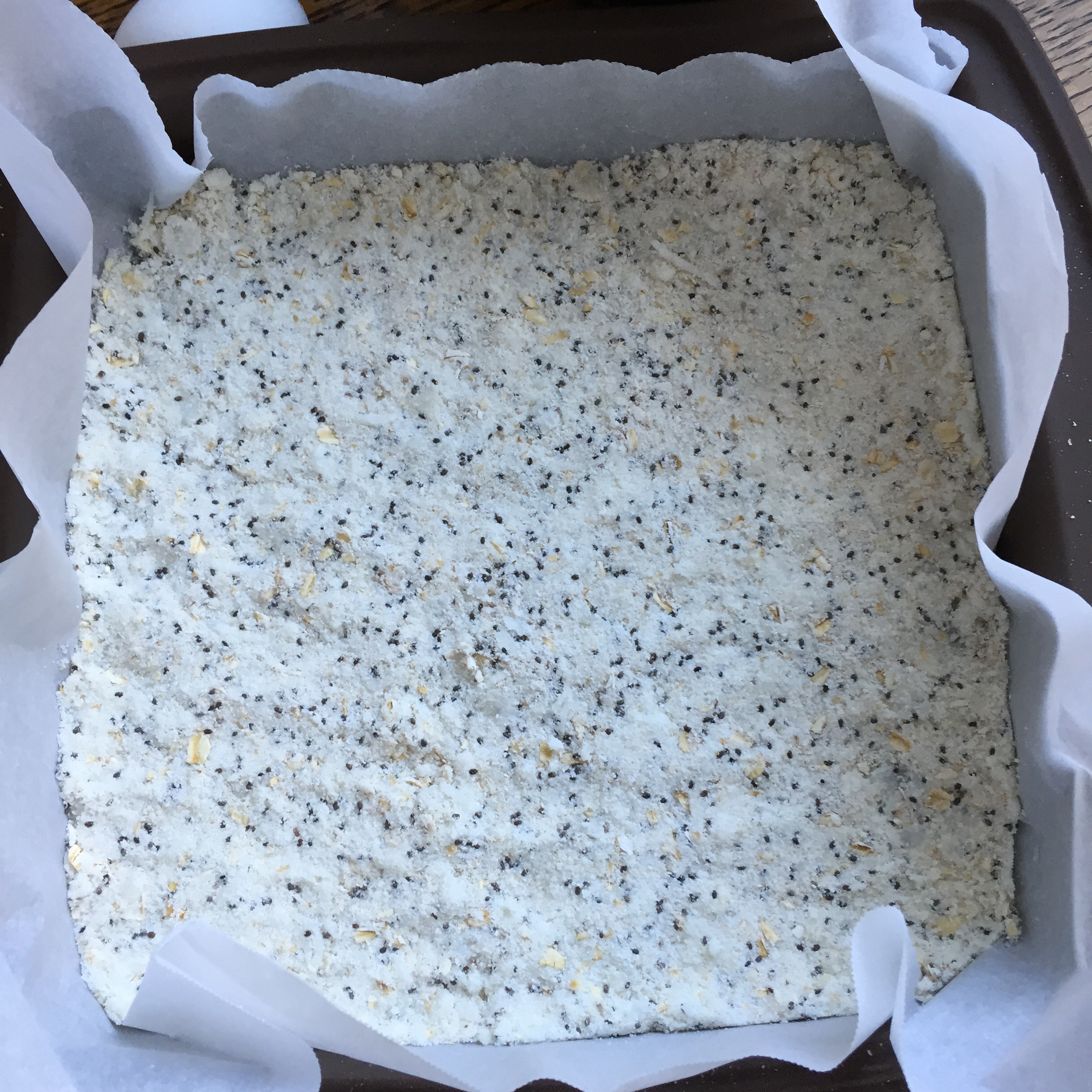 4. Pour and firmly press the flour mixture into the baking dish. Bake for 15 minutes. Remove from oven and let cool.